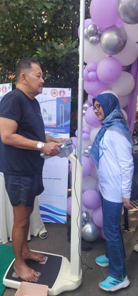 Hari Minggu, 27 April 2025 dalam rangka Dies Natalis Universitas Sebelas Maret (UNS) ke 49 KSM Ilmu penyakit Dalam RS UNS (IPD RS UNS) ikut serta dalam kegiatan Pengabdian Masyarakat yang diadakan oleh Universitas Sebelas Maret bertempat di Car Free Day (CFD) Loji Gandrung Surakarta. Kegiatan tersebut dilaksanakan pada pagi hari pukul 06.00-09.00 WIB.